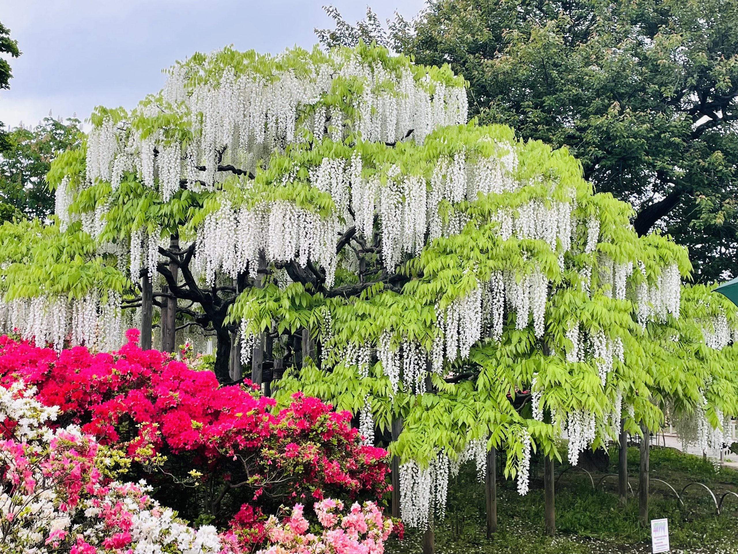 藤の花ってそんなに香らないのかと勝手に思っていたのですが、 白藤はマスク越しでも分かるくらい甘い香りを放っていました。