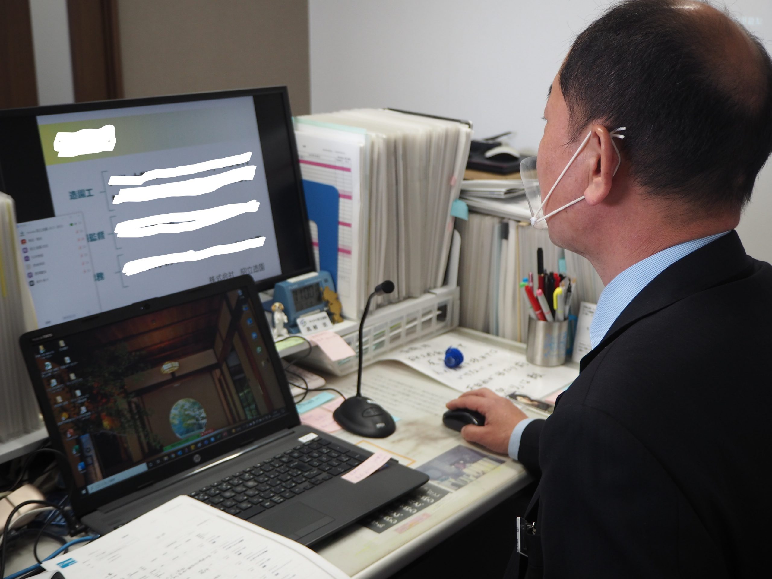 そういえば、Zoomって難しいなと実感したエピソードが一つ。実は今回の説明会のさなか、PTが見ている学生の映像が画面のどこに行ったのかわからないというハプニングが発生しまして、、、(学生はカメラをオンにしたままでいてくれたのですが、どこのボタンを触ったのやら…)なんというか、相手の顔が見えていない状態で話すことの難しさを痛感いたしました。いつもは正面の画面に映っているはずの学生の顔がないといったいどこを向けばよいのやら困惑するPT。(下の画面のように本来ノートパソコンに学生の顔が映っているはずが、、、(。´・ω・)?)