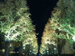 そのイチョウ並木が先日ライトアップされていたので撮影しました✨