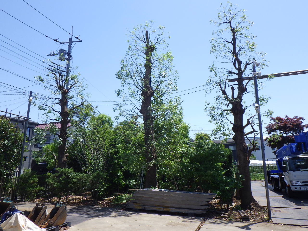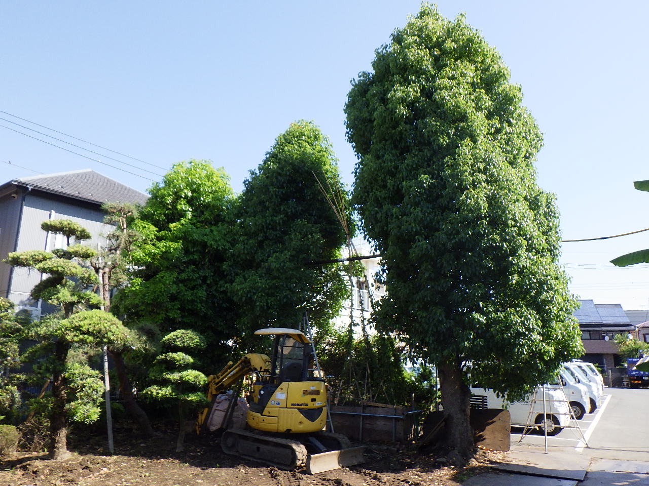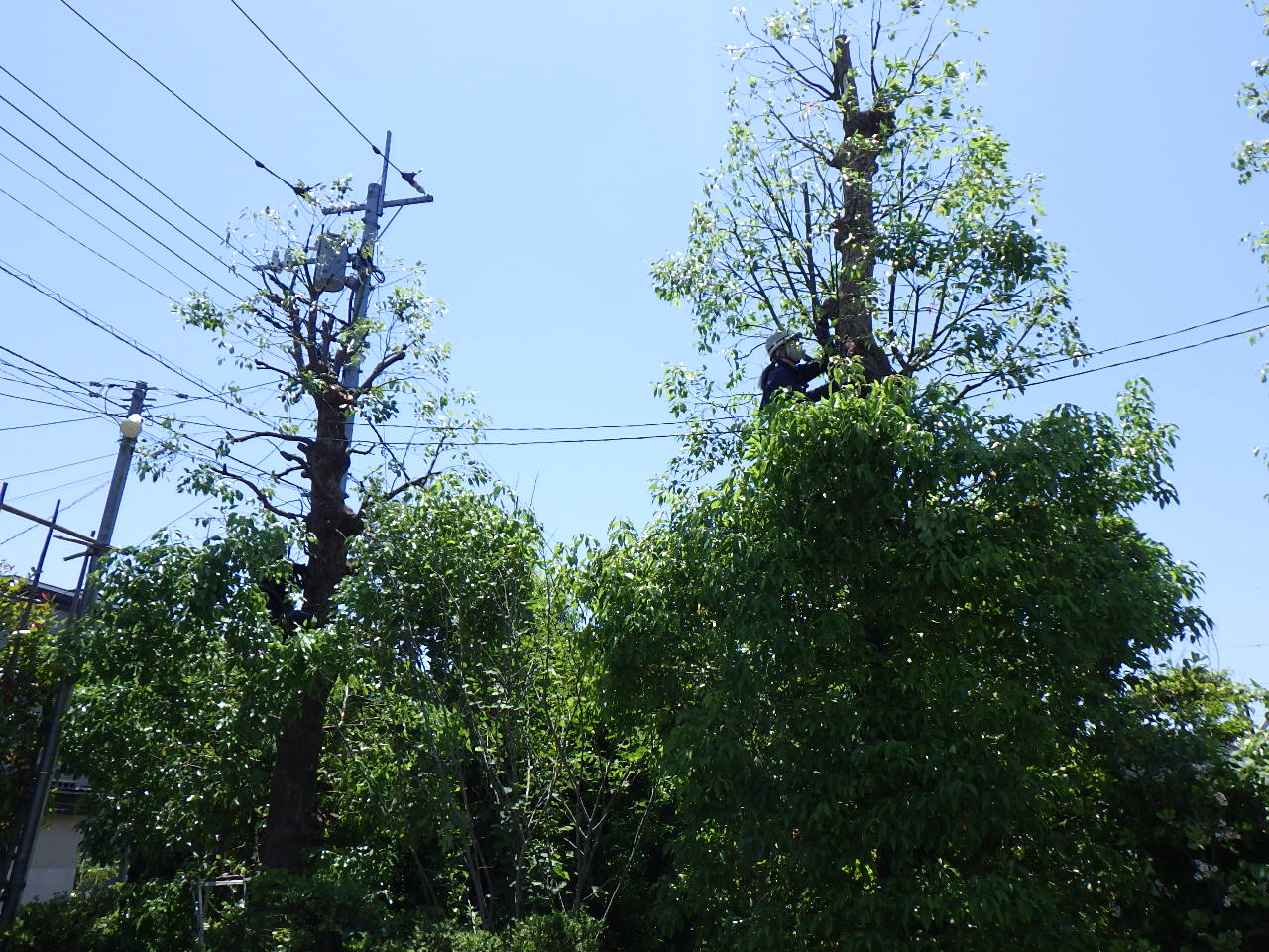 せん定したクスノキは例年刈り込みで仕上げていたため、枝を切り返すのが大変でした。