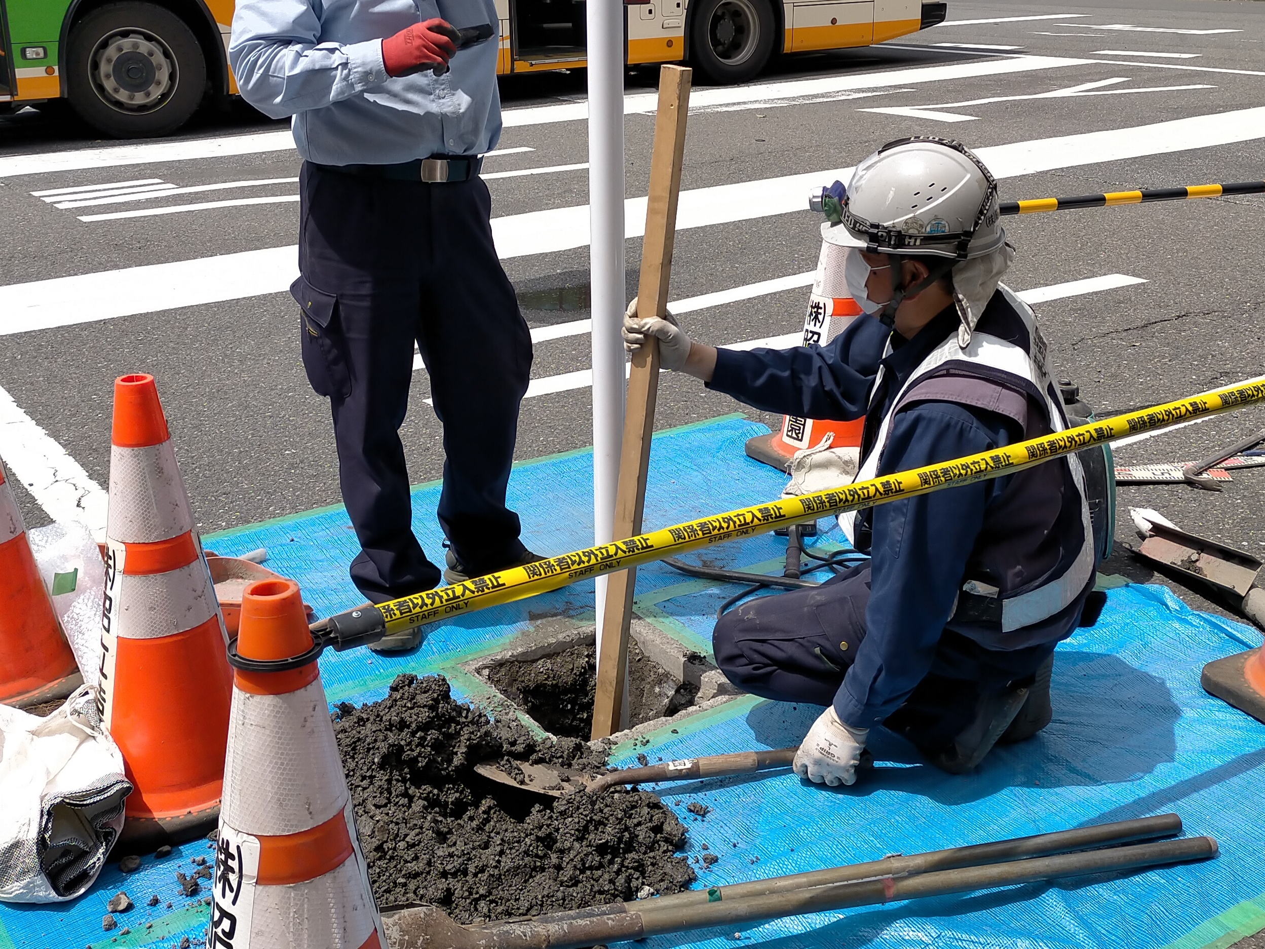 事故で壊れてしまった標識を直しているところなのですが、ほんの1時間くらいで新しいものが綺麗に出来上がっていてその手際の良さに驚くばかりでした。